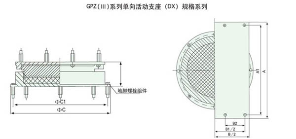 b、单向活动支座:具有竖向承载、竖向转动和单一万向滑移性能,代号为DX 。