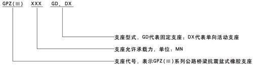 GPZ(Ⅲ)2.5DX 表示承载力2.5MN的GPZ(Ⅲ)型单向活动抗震盆式橡胶支座